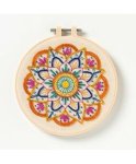 This kit is perfect for the beginning stitcher who wants an easy first project. You'll enjoy the relaxation and fun this dainty project can bring. This package contains one 6 inch plastic hoop, stamped fabric, cotton embroidery floss, embellishments, one needle and instructions. Finished Size: 6 inches round. Design: Jeweled Mandala. Imported.